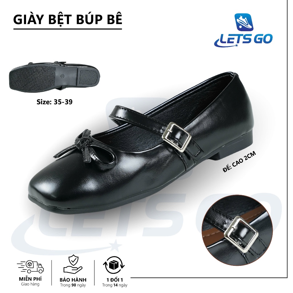 Giày búp bê nữ phối nơ mũi vuông, giày lolita giày lolita chất da mềm dẻo, êm chân - Giày dép hottrend shop