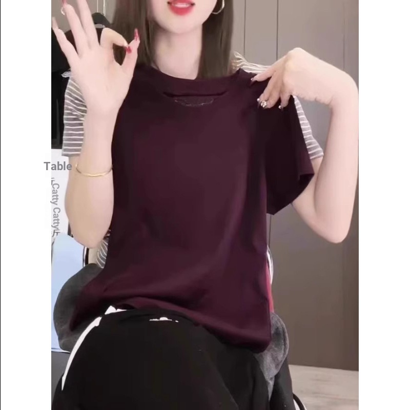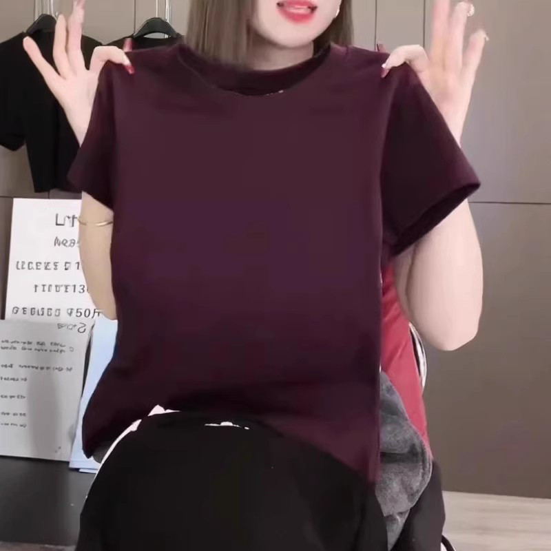 Fat MM Plus Size Áo Thun Nữ Tay Ngắn Top 2026 Phong Cách Mới Bán Chạy Hàn Quốc Sang Trọng Sang Trọng Cổ Tròn Retro Màu Trơn