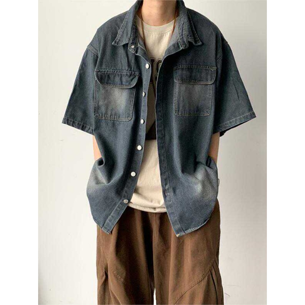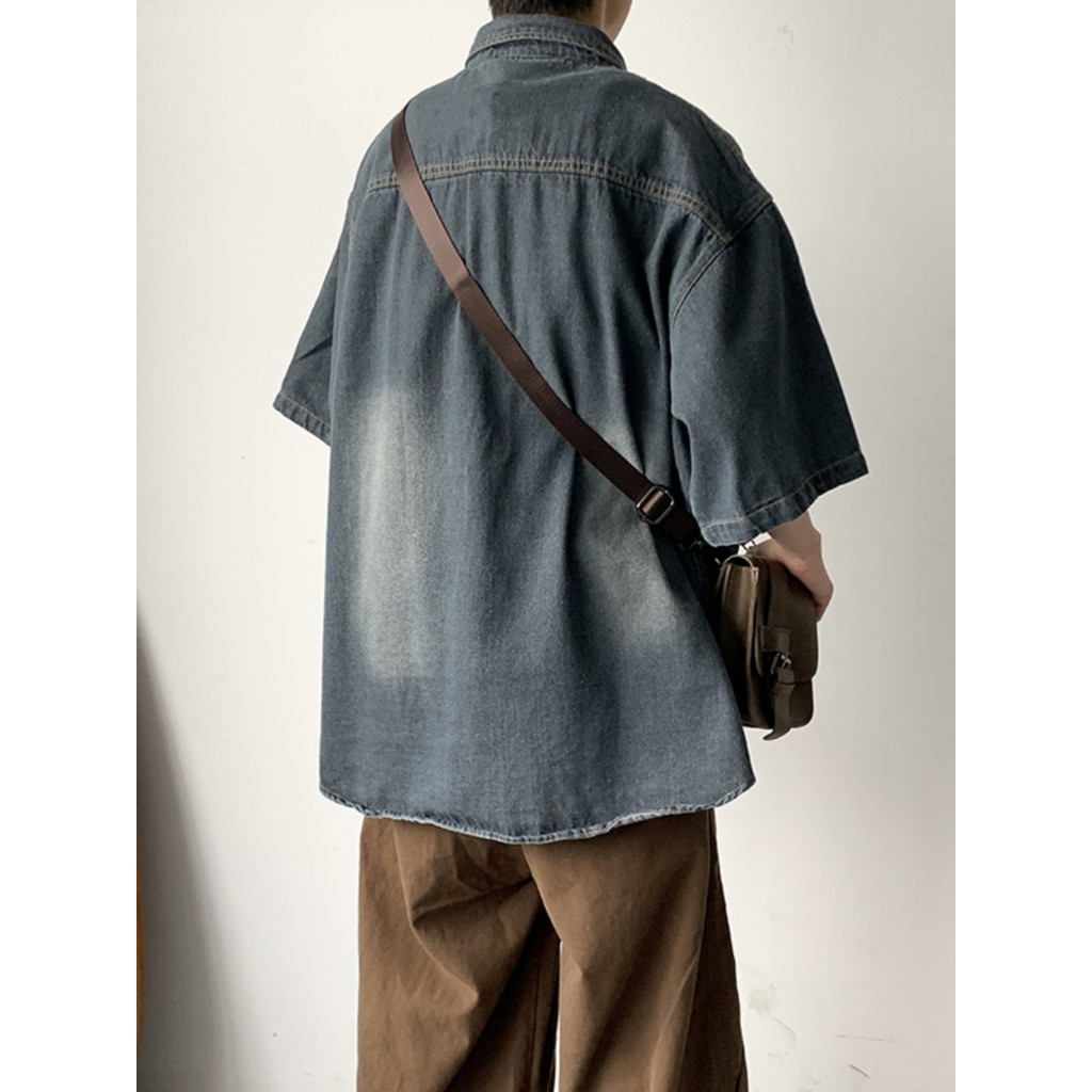 Áo sơ mi denim ngắn tay nam nữ retro - Thời trang mùa hè