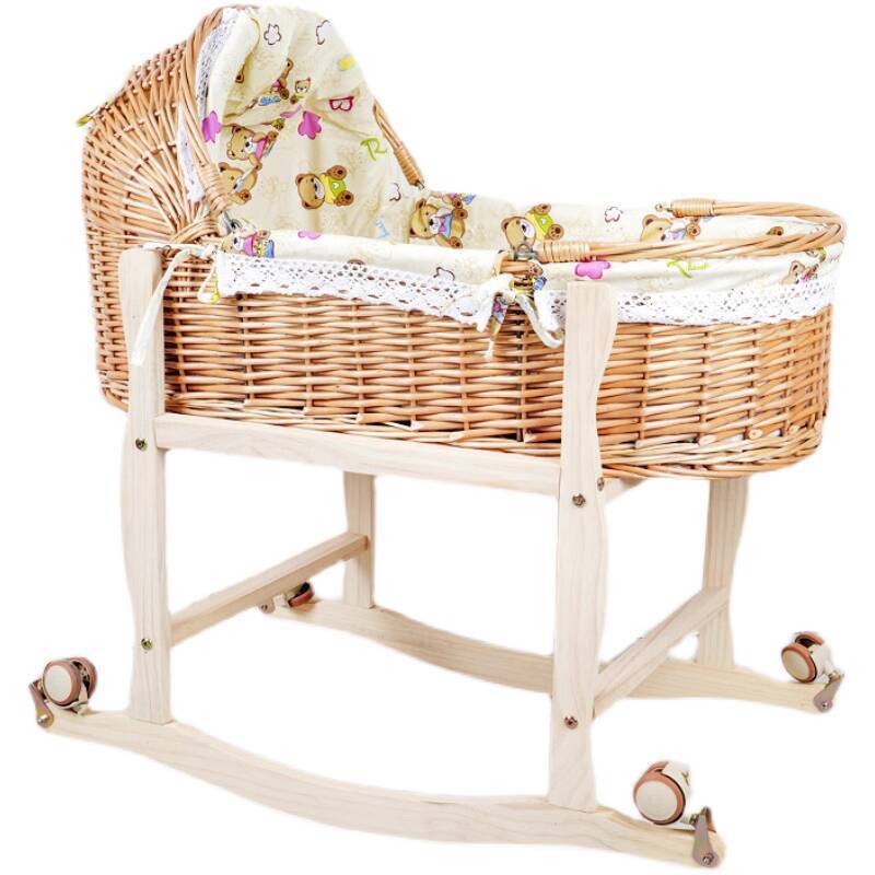 Giường em mây, cầm tay di động sơ sinh, giỏ ngủ thoải mái cho trẻ em, nôi bằng gỗ chắc chắn