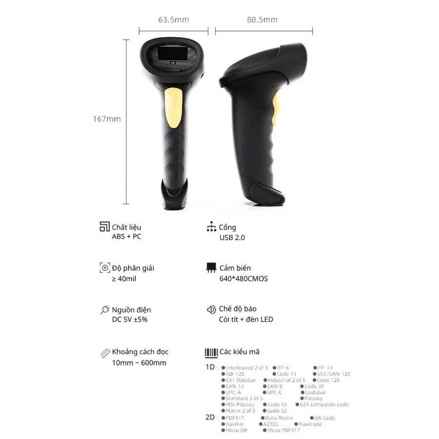 Máy quét mã vạch không dây 2D Bluetooth KAW cao cấp, quét mã vạch, QR, CCCD bảo hành chính hãng