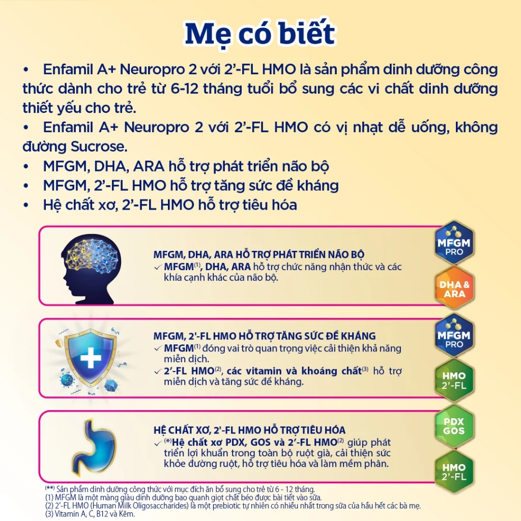 [Chính Hãng Date Mới] Sữa bột Enfamil A+ Neuropro Số 2 1.7kg phát triển não bộ 6 –12 tháng tuổi