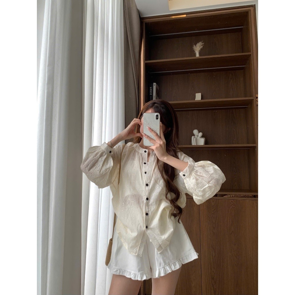 Set Áo Bbd Cổ Tròn Dài Tay Hoa Nổi Kèm Quây 21.ROOM S816