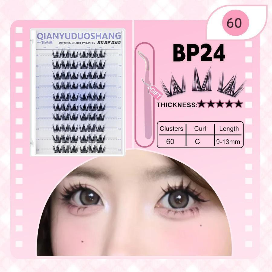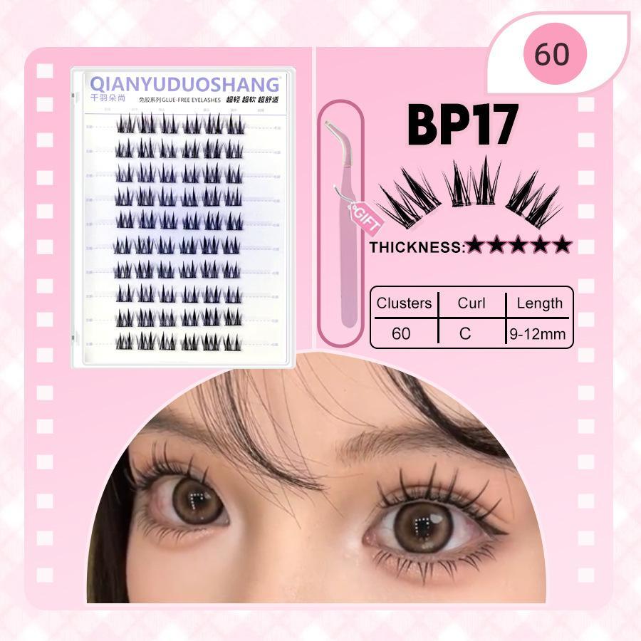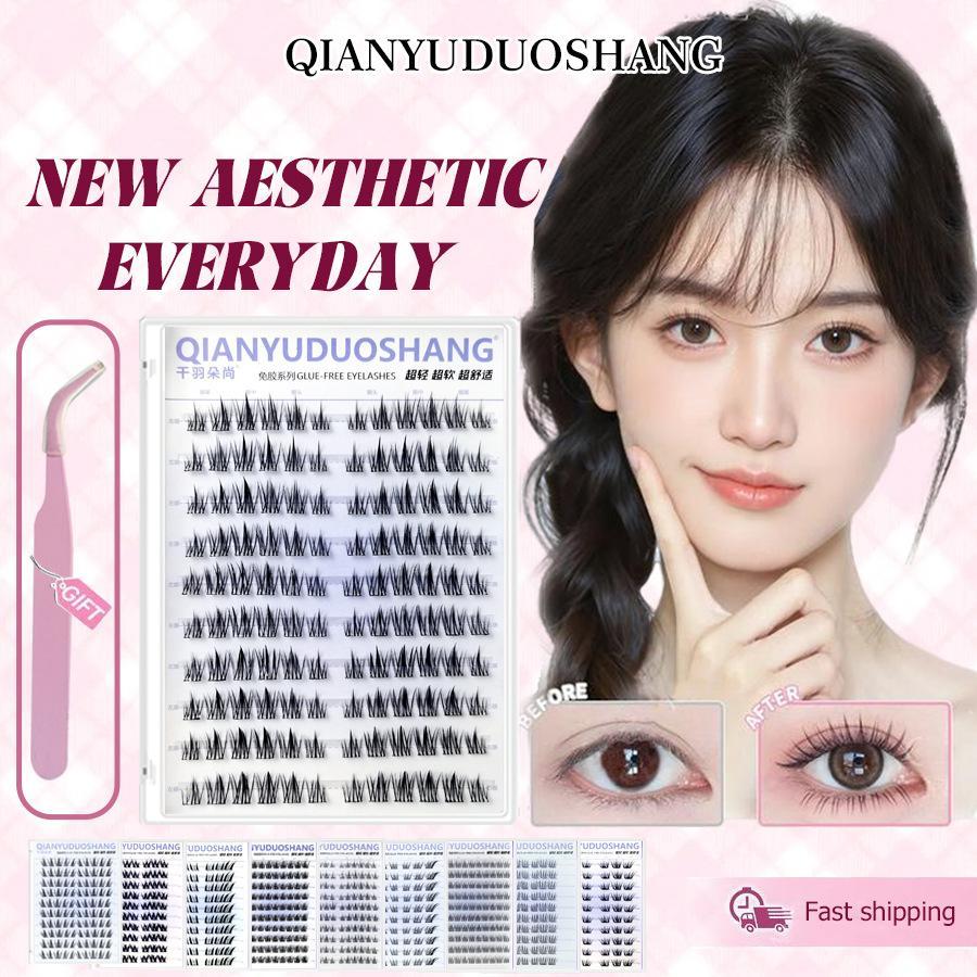 Qianyu Duoshang Hàng mi phân đoạn Độ dày tự nhiên Lông mi giả Tự dính Phần mở rộng lông mi không keo 10 hàng Thân màu đen mịn