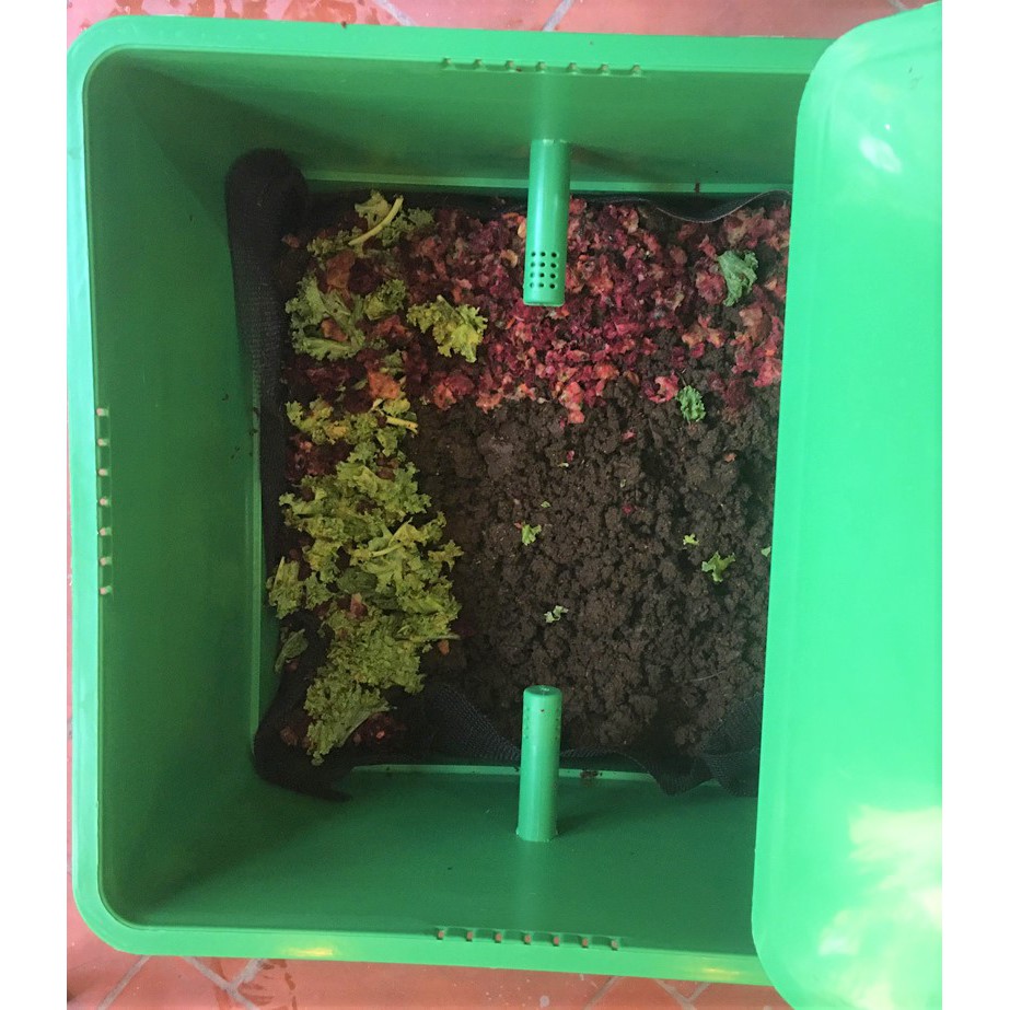 Thùng nuôi trùn (giun) xử lý rác tại nhà.
