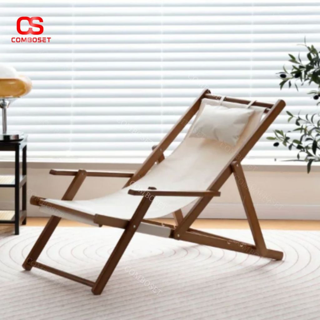 Ghế Ngồi Ngoài Trời, Ghế Bãi Biển, Ghế Chân Gỗ Gấp Gọn, Dễ Di Chuyển