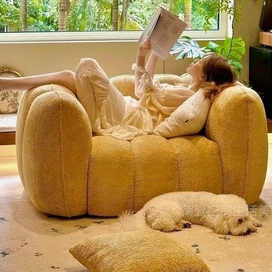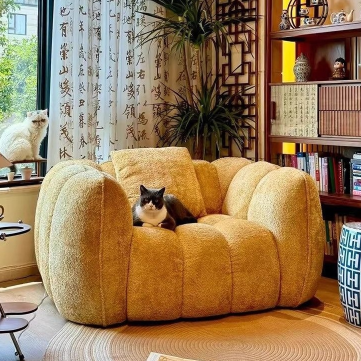Sofa Đơn Bo Tròn Phong Cách Bí Ngô – Nỉ Bông Dày, Cảm Giác Ấm Áp
