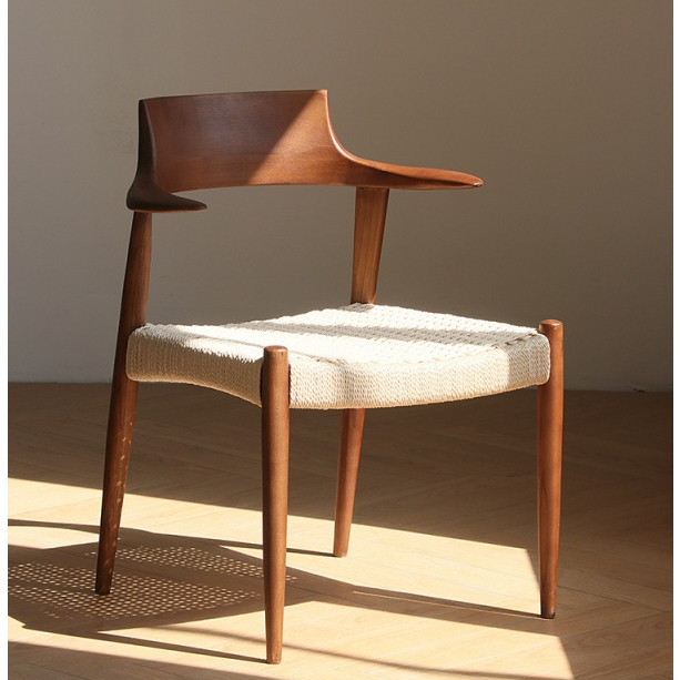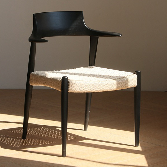 Ghế Gỗ Hai Tai Tựa Lưng Dạng Sừng, Đệm Dây Thủ Công Gọn Gàng
