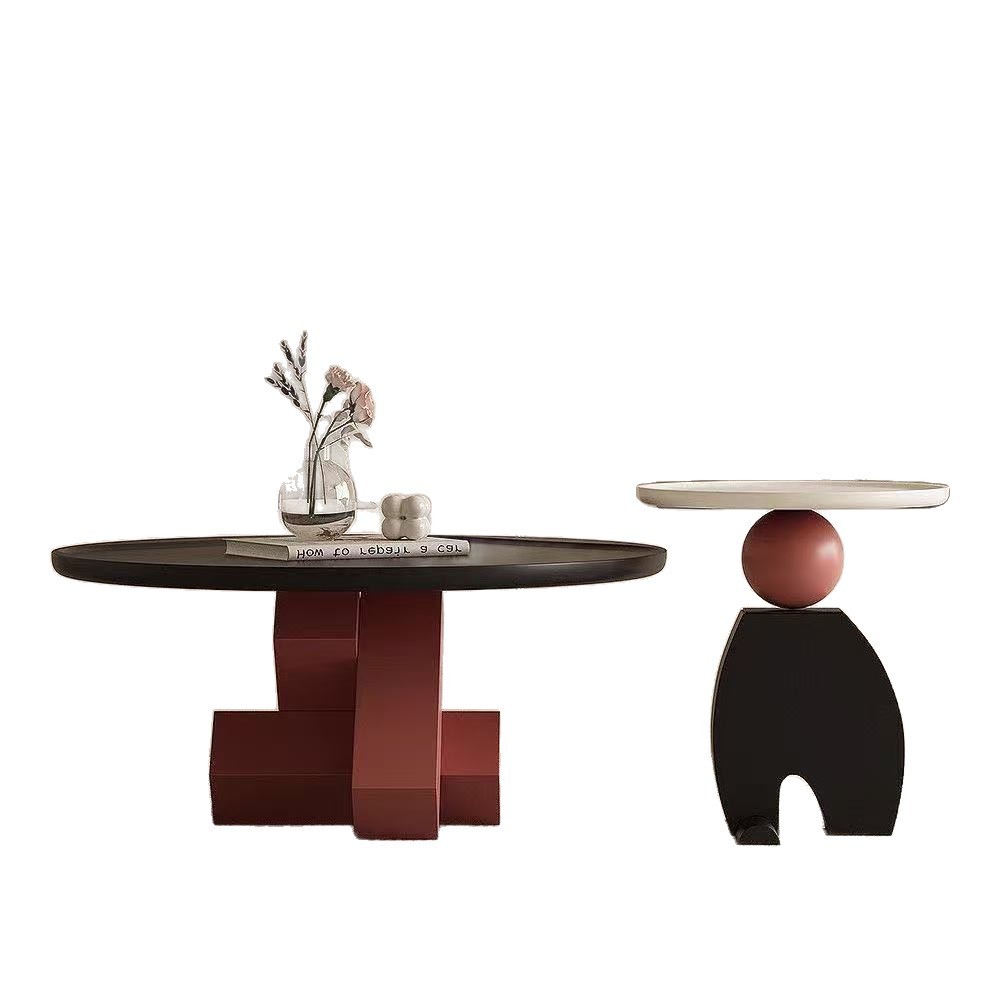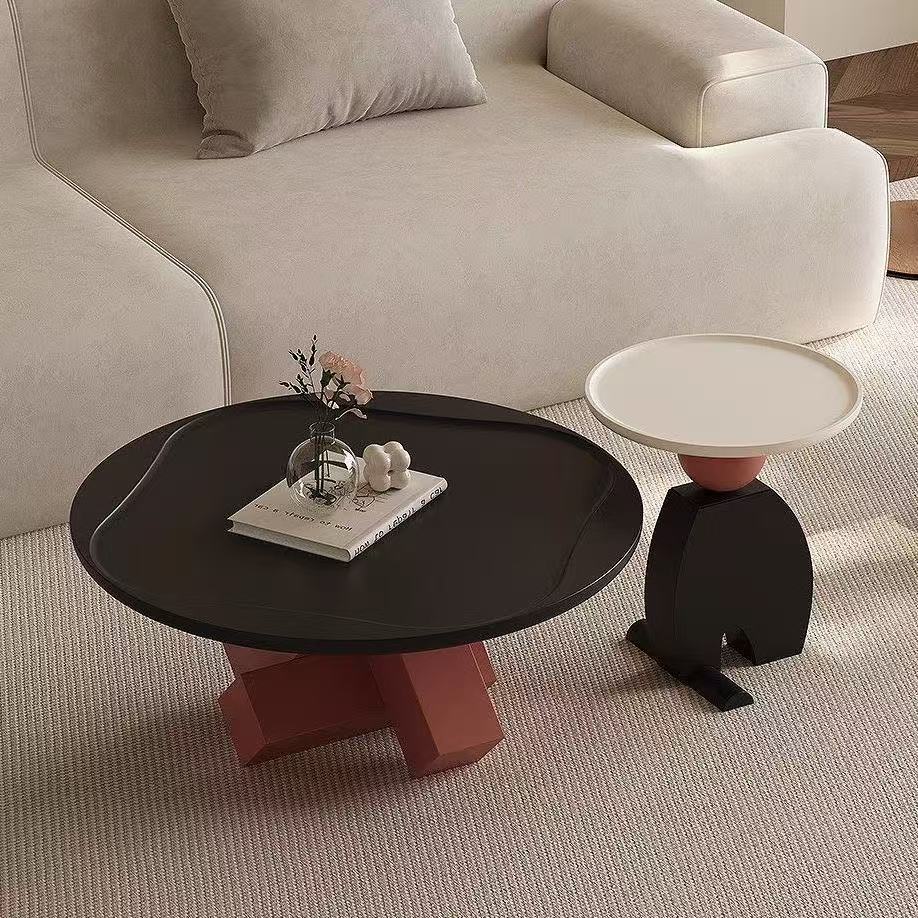 Set 2 Bàn Sofa Mặt Tròn – Chân Khối Hình Học Phối Cầu Trang Trí Hiện Đại