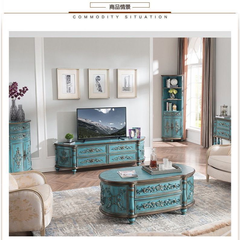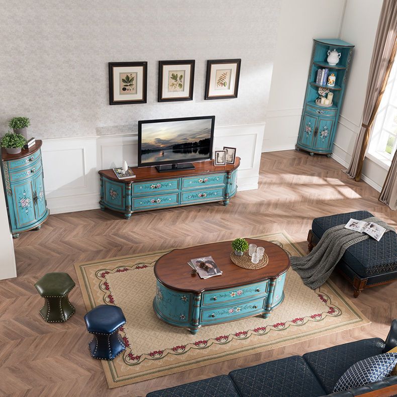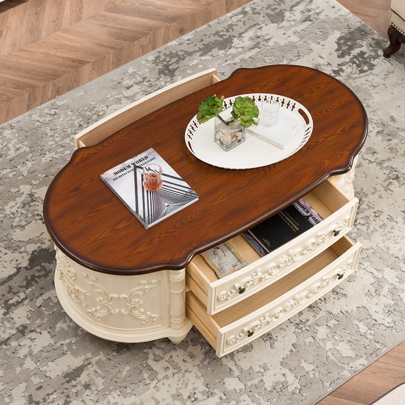Bàn Trà Gỗ Bầu Dục Vẽ Tay Nghệ Thuật