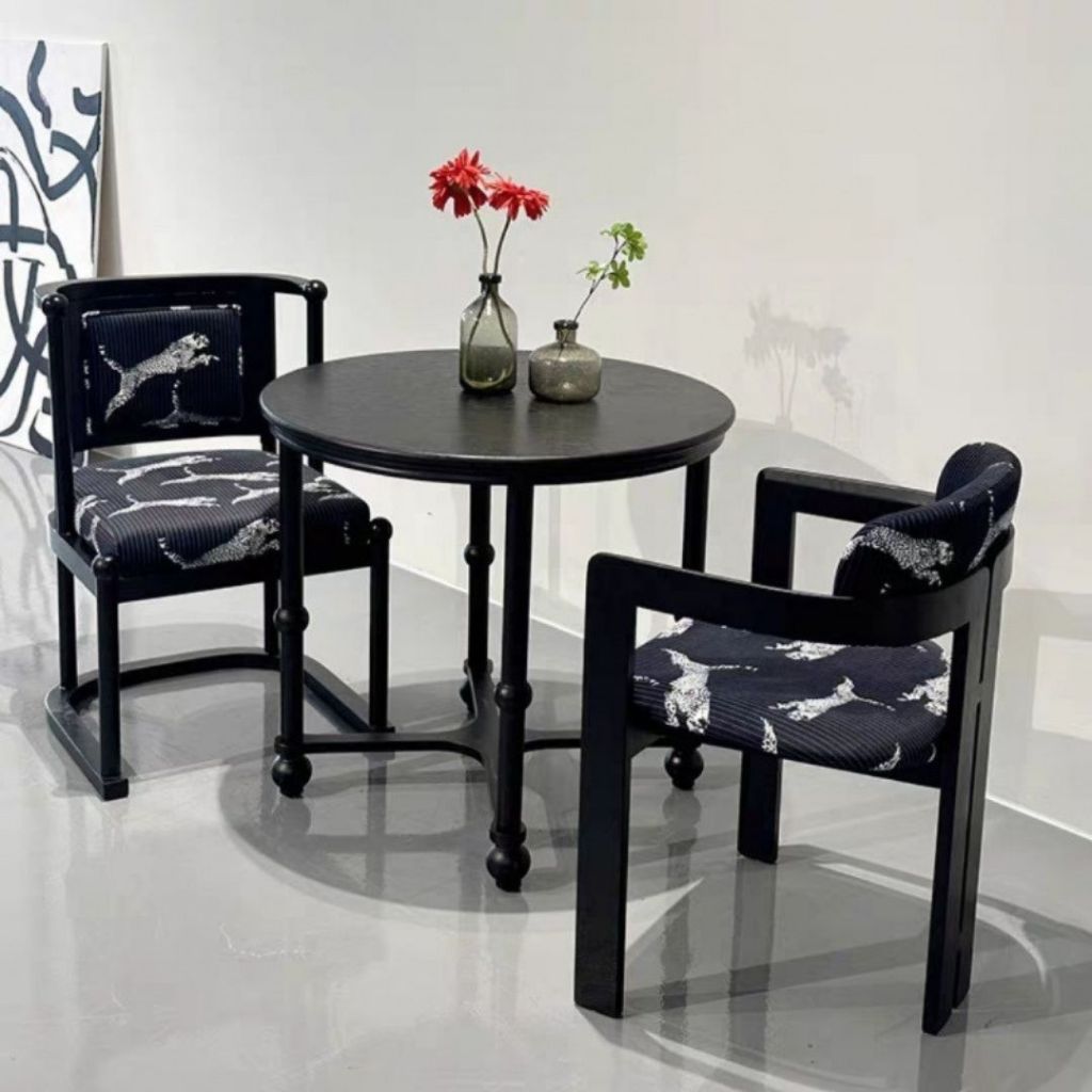 Ghế Đơn Gỗ Dáng Thấp, Khung Bo Mềm, Nệm Vải In Hình Tạo Điểm Nhấn