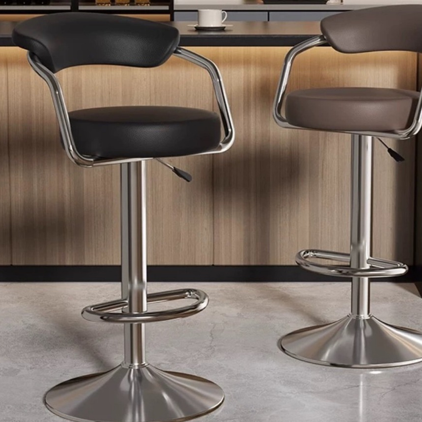 Ghế Da Nappa, Ghế Quầy Bar, Đệm Tròn, Nâng, Xoay