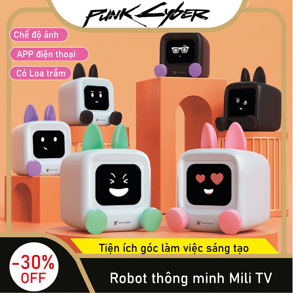 Robot thông minh IPS Mili TV hiển thị hình nền, hình động, theo dõi chỉ sô, phát nhạc bluetooth