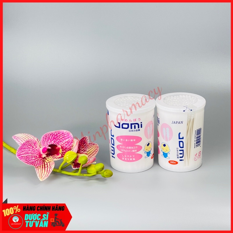 Tăm Bông Kháng Khuẩn JOMI Dành Cho Trẻ Em 1 Đầu Xoắn 1 Đầu Tròn (Hộp 160 chiếc) - Minpharmacy