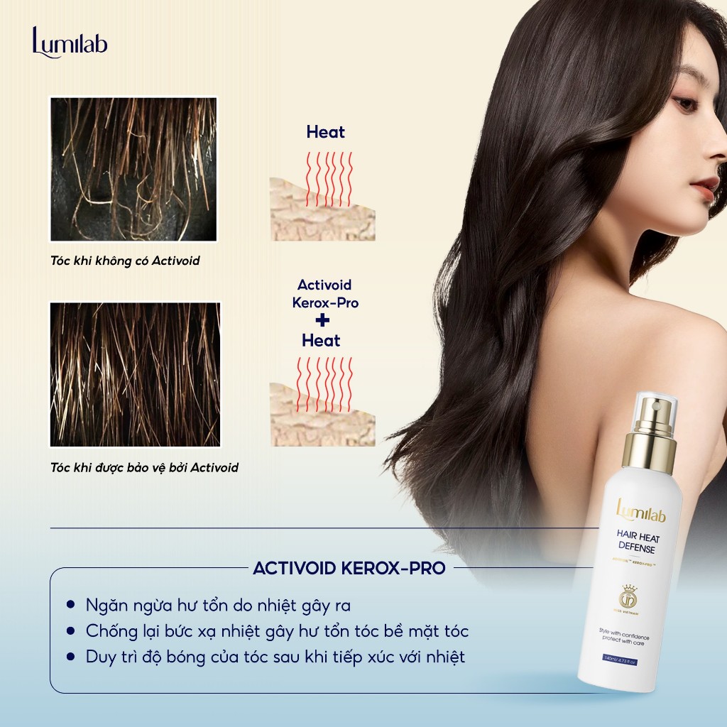 Xịt bảo vệ tóc Lumilab Hair Heat Defense – Bảo vệ tóc trước tác động của nhiệt, phục hồi hư tổn, giữ nếp bóng mượt 140ml