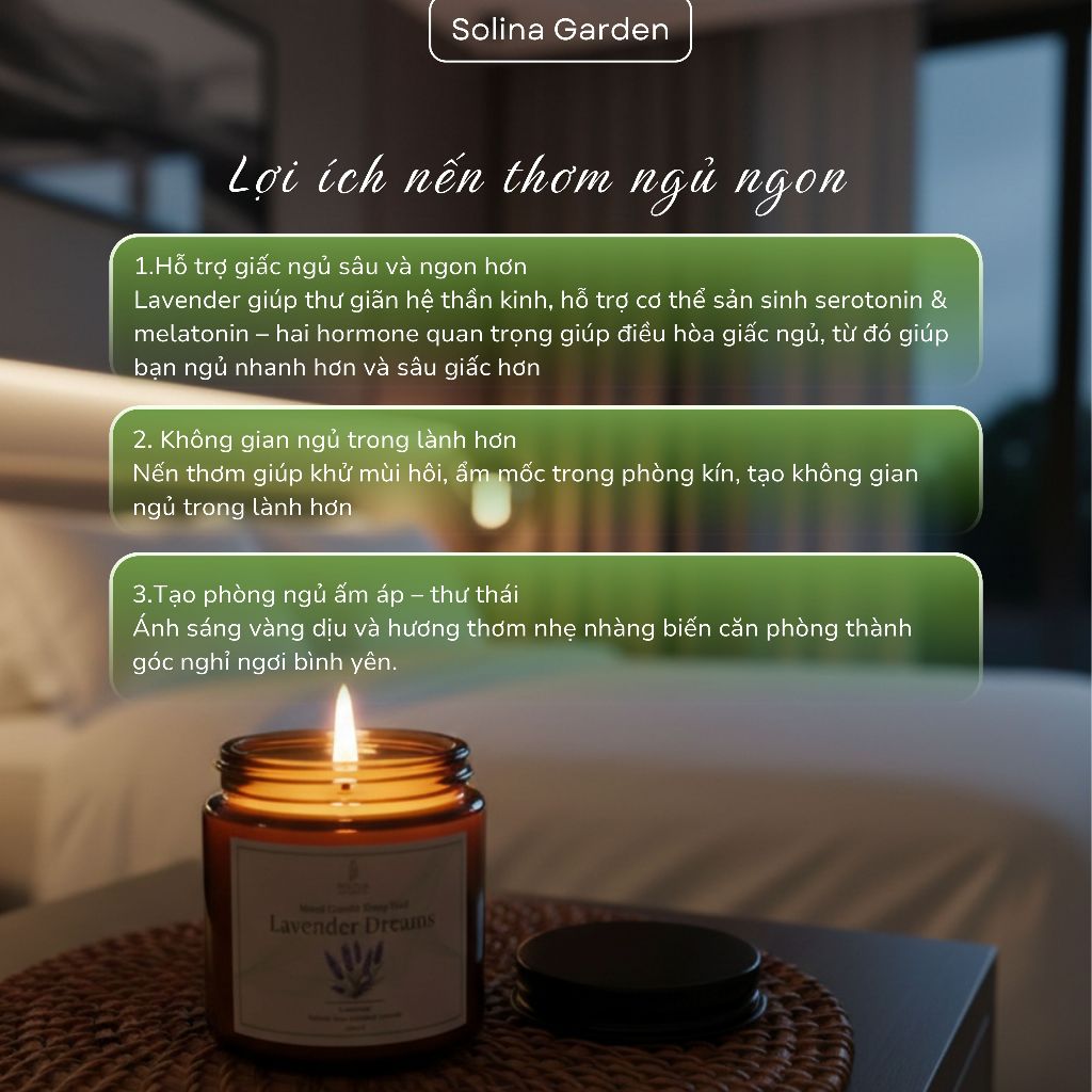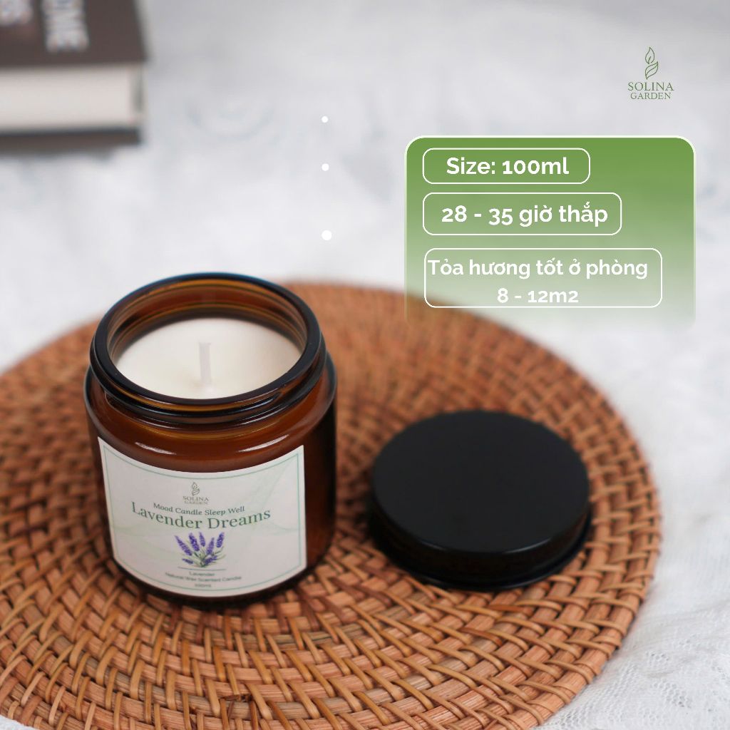 Nến thơm hương Oải hương thư giãn, giúp ngủ ngon - an toàn, lành tính, thơm phòng, dễ ngủ, làm quà tặng | Solina Garden