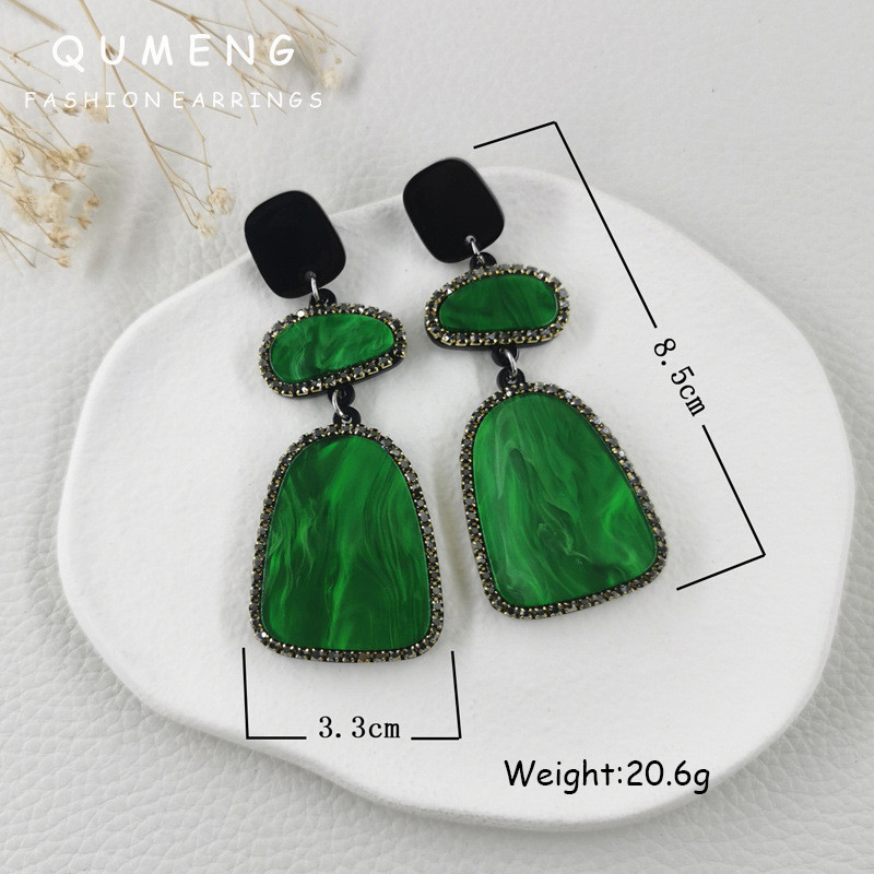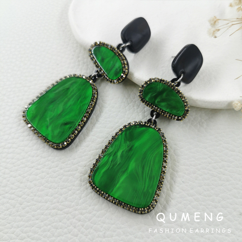 Bông tai họa tiết xanh không đều phóng đại thời trang