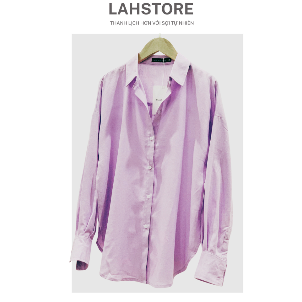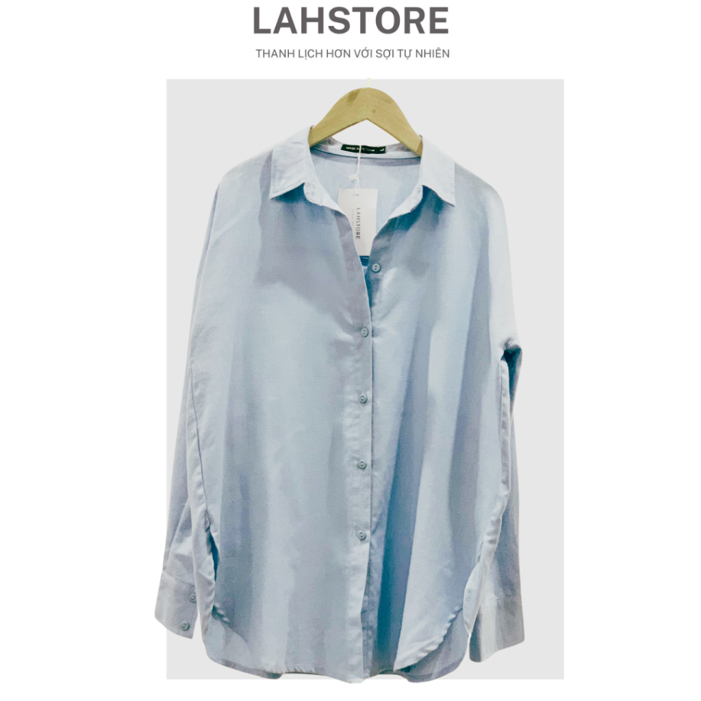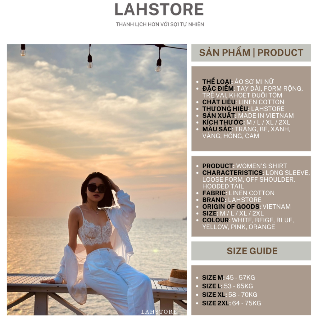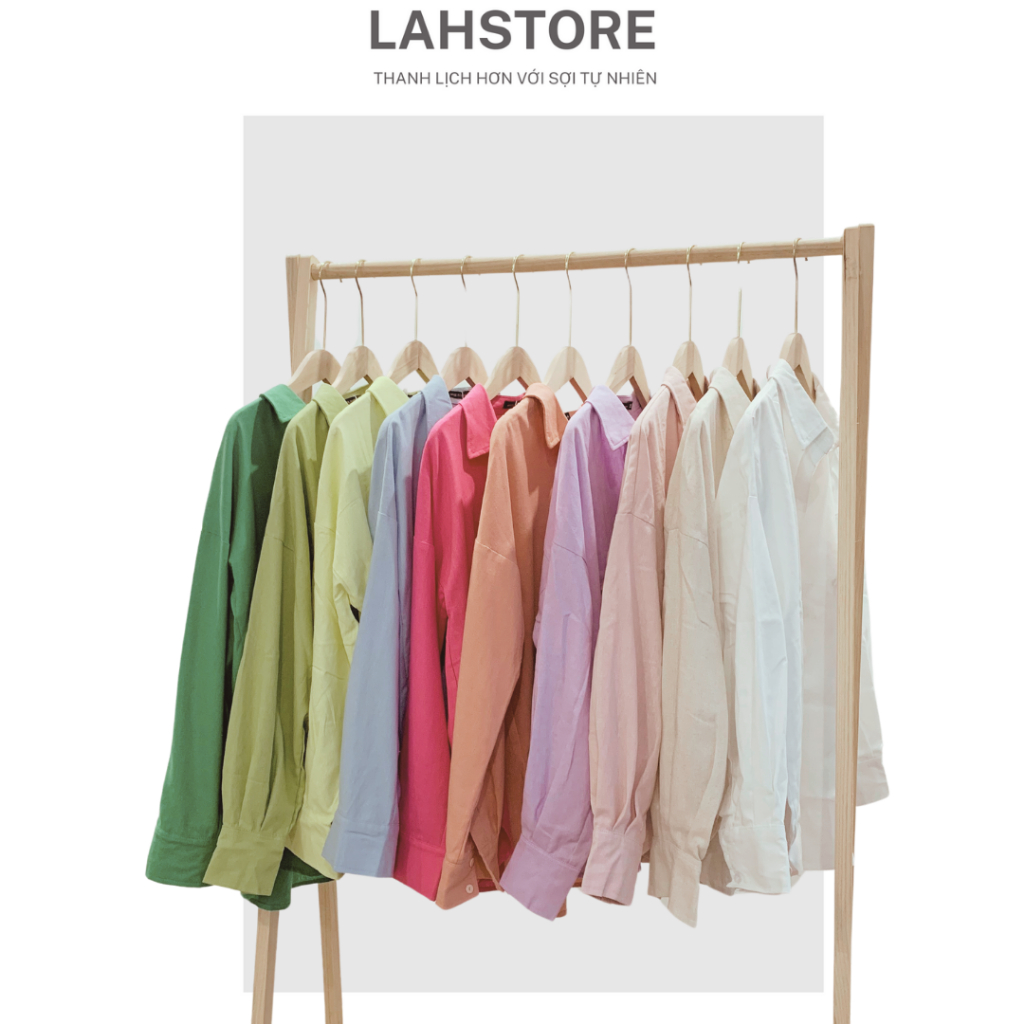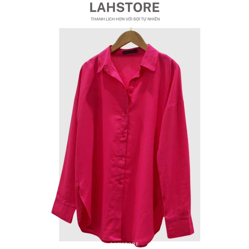 Áo sơ mi nữ form rộng tay dài trễ vai vải linen thô, đuôi tôm khoét sâu LAHSTORE nhiều màu ASM01