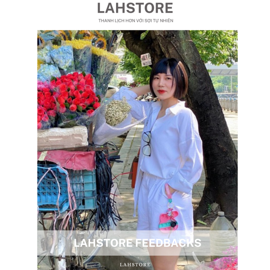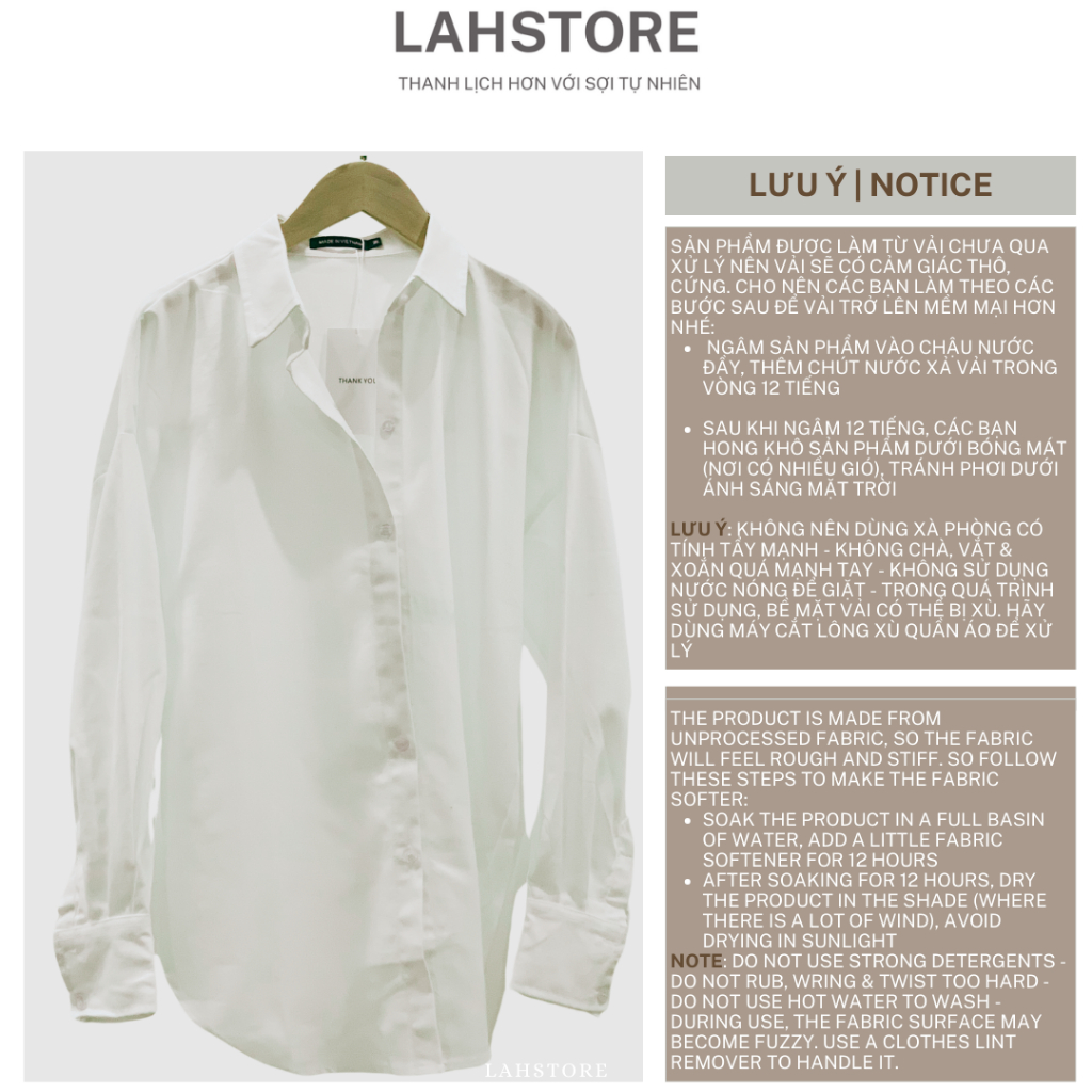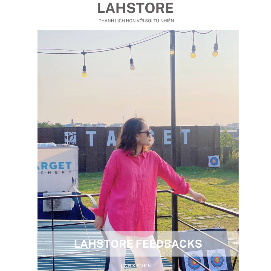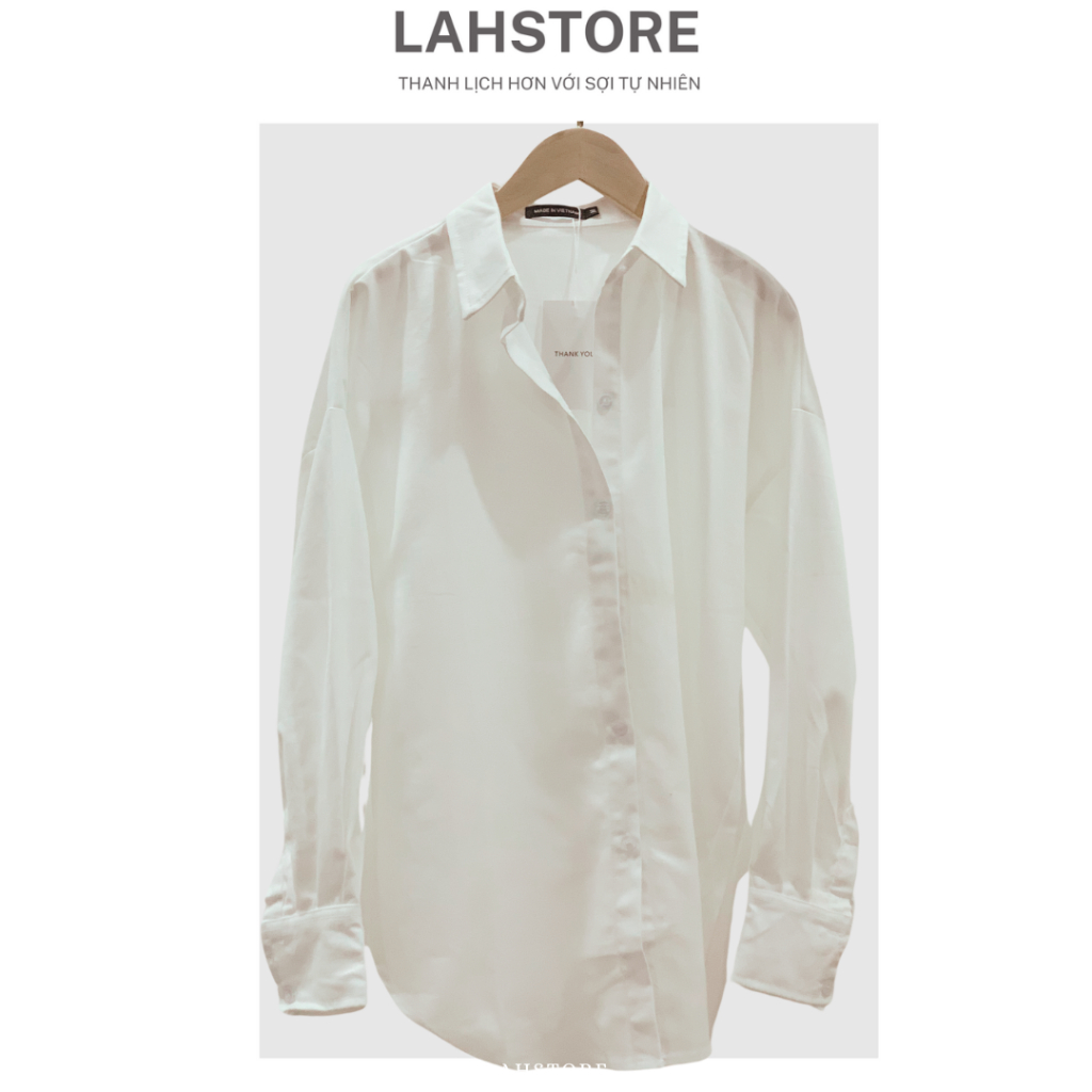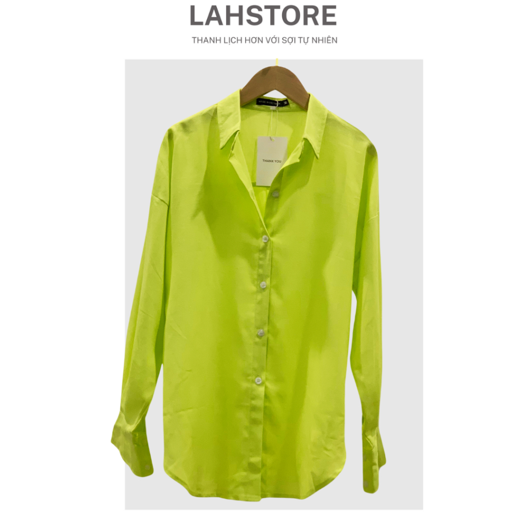 Áo sơ mi nữ form rộng tay dài trễ vai vải linen thô, đuôi tôm khoét sâu LAHSTORE nhiều màu ASM01
