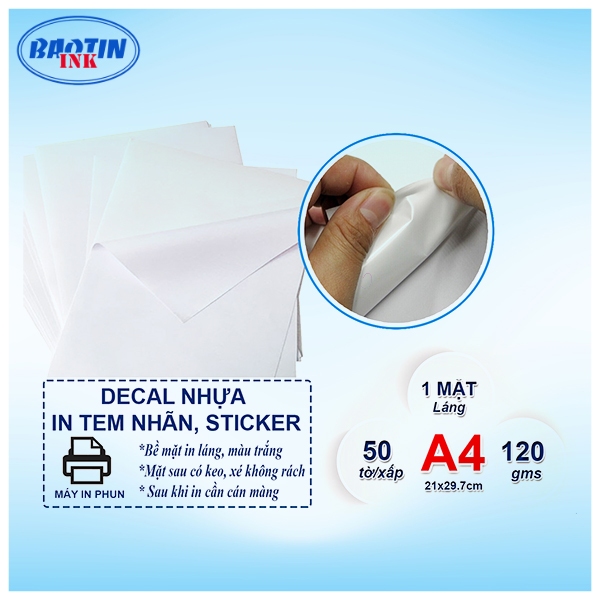 Decal PVC Trắng Sữa không kháng nước in phun Khổ A4 xấp 50 tờ