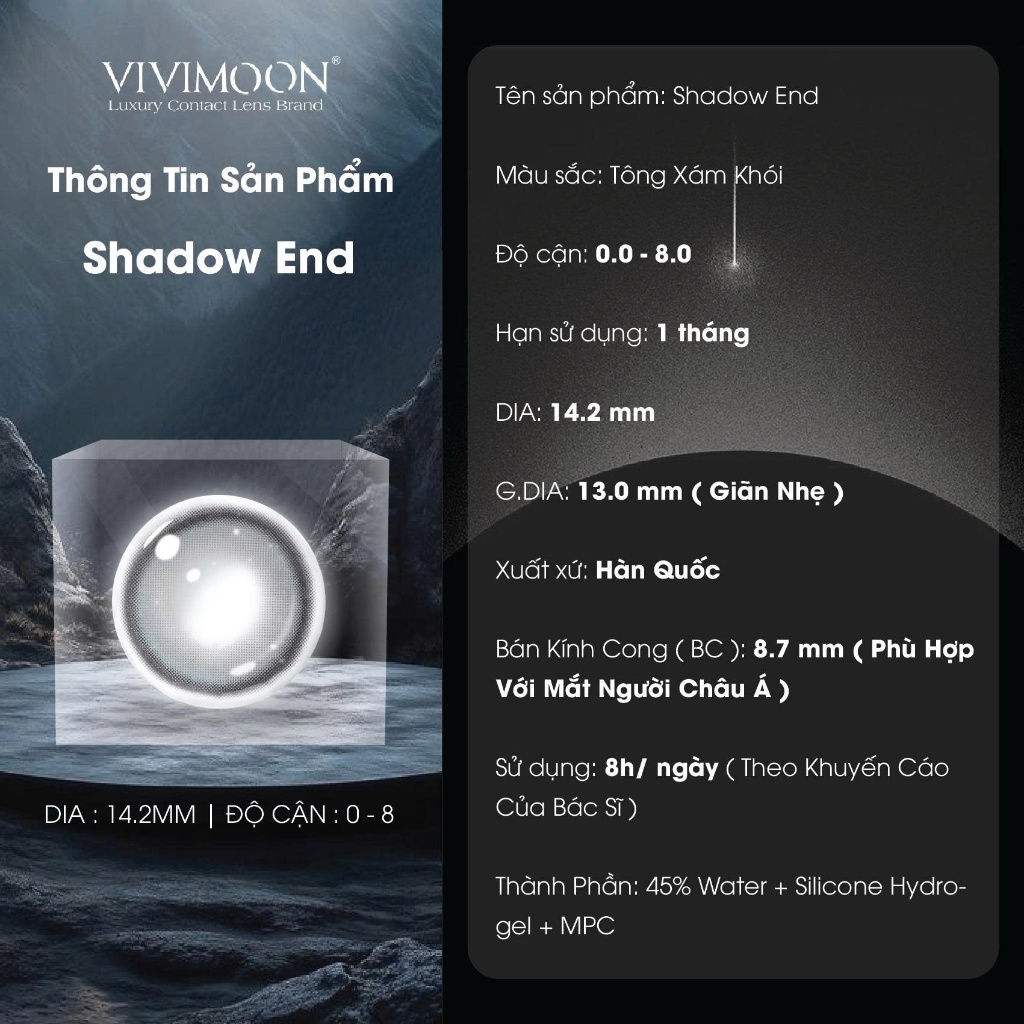 VIVIMOON lens cận khóa ẩm với công nghệ MPC cao cấp, kính áp tròng Shadow End tông xám khói sử dụng trong 1 tháng