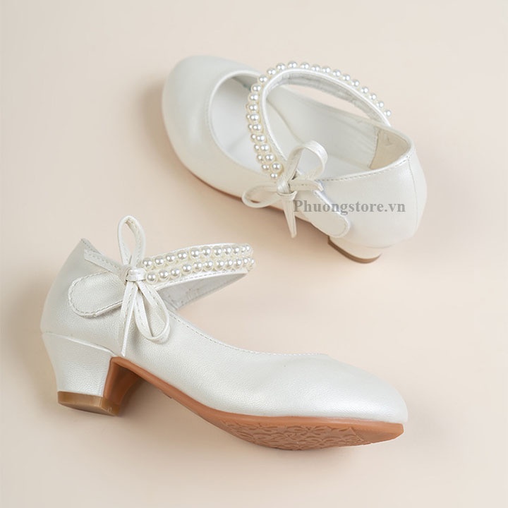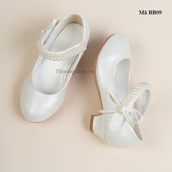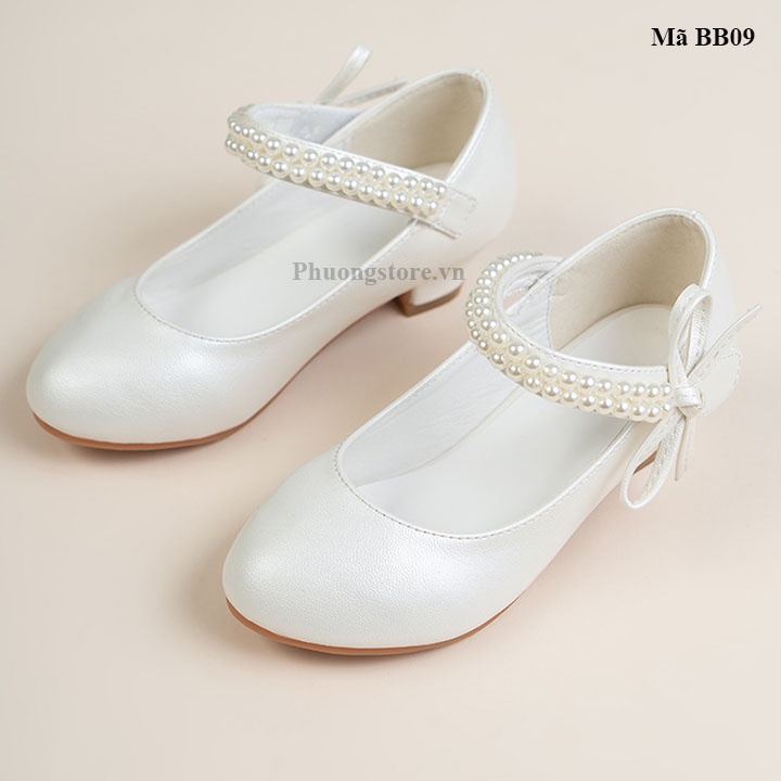 Giày cao gót trẻ em từ 3-12 tuổi màu trắng đi tiệc, đi biểu diễn BB09