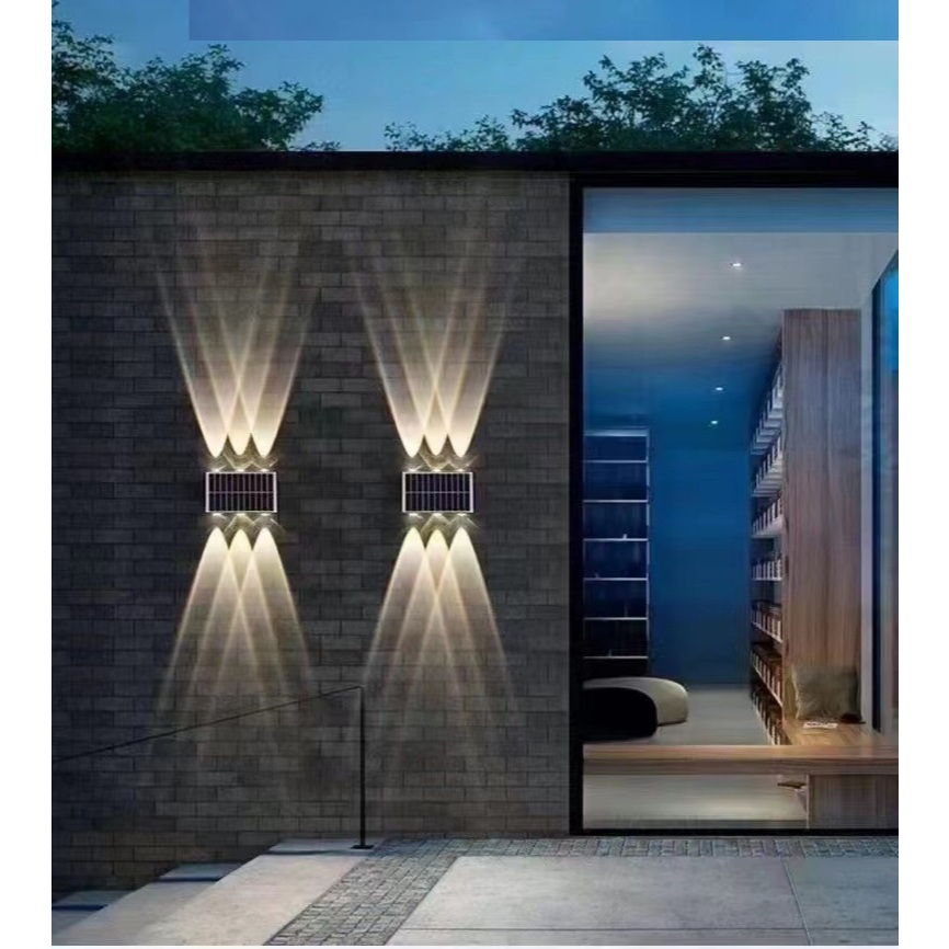 Đèn Hắt Tường Năng Lượng Mặt Trời Nam phong solar 2 đầu Ánh Sáng Vàng Chống Nước IP65