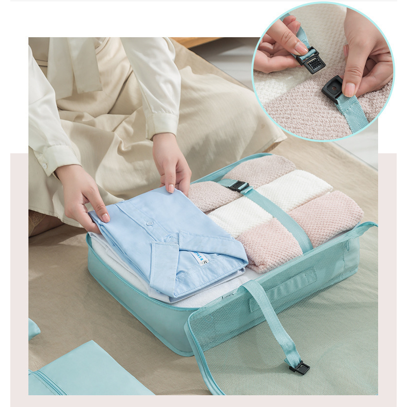 Set 7 Túi 2 Lớp Vải Cation Đựng Đồ Du Lịch Quần Áo Chống Thấm Nước Tiện Lợi Thích Hợp Đi Tour Gia Đình