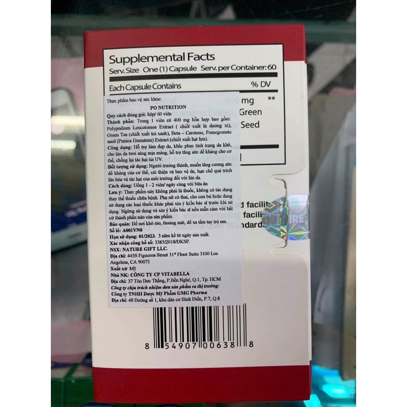 VIÊN UỐNG CHỒNG NẮNG Sunsafe Po 60 Viên