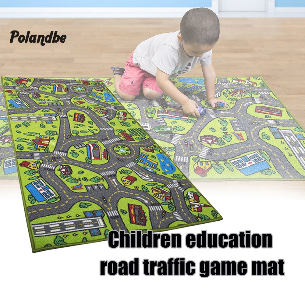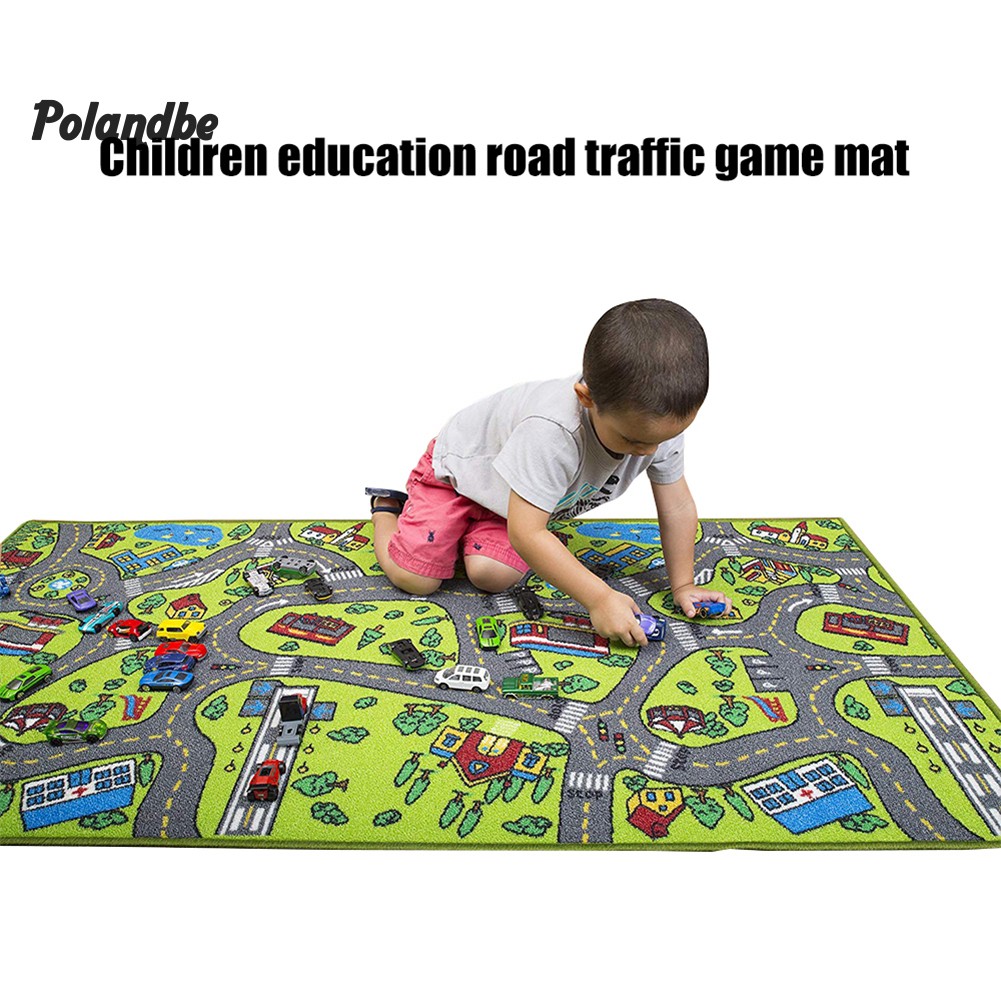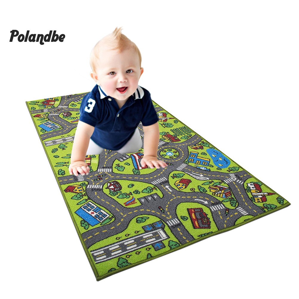 ●Po Children Kids Educational Car City Road Carpet Baby Crawling Rug Mat Play Toy Thảm Lông