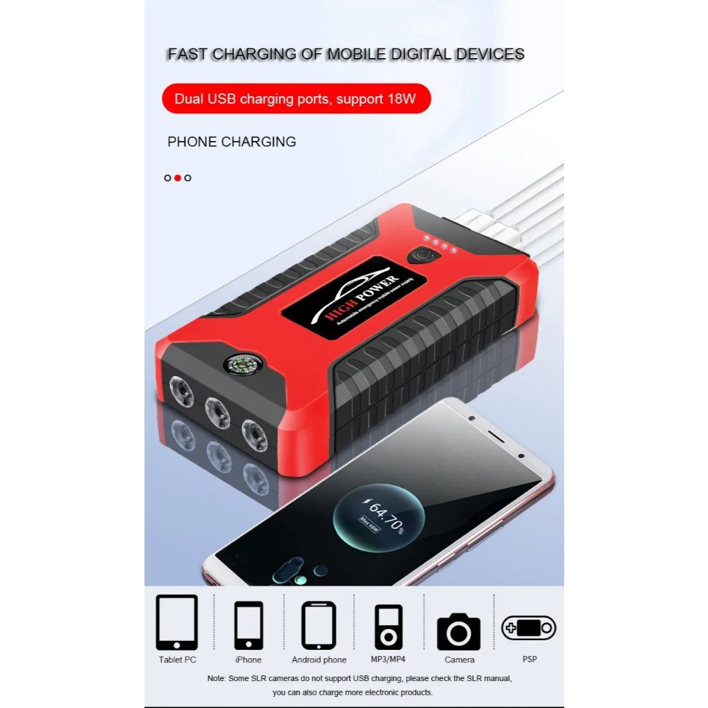 Bộ Kích Bình Bơm Lốp Ô Tô Đa Năng High Power dung lượng pin lớn 99800mAh, khởi động khẩn cấp ô tô 12v