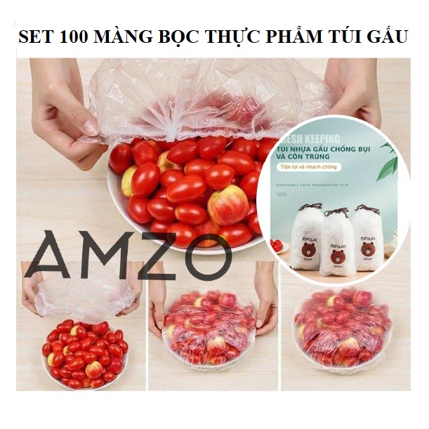 AMZO_(LOẠI ĐỦ) COMBO MÀNG BỌC THỰC PHẨM PE/ TÚI GẤU CÓ CHUN BỌC ĐỒ ĂN CO GIÃN TỐT 24CM (BỌC LỚN DÀI)