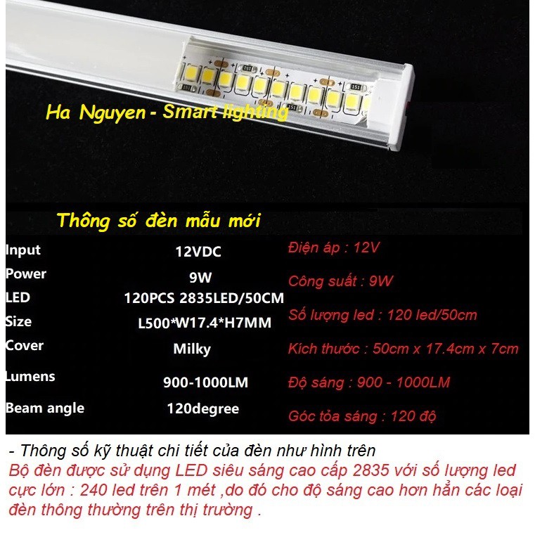 Bộ đèn LED thanh ngang gắn tủ bếp ,tủ quần áo , tủ giày , kệ bếp ...