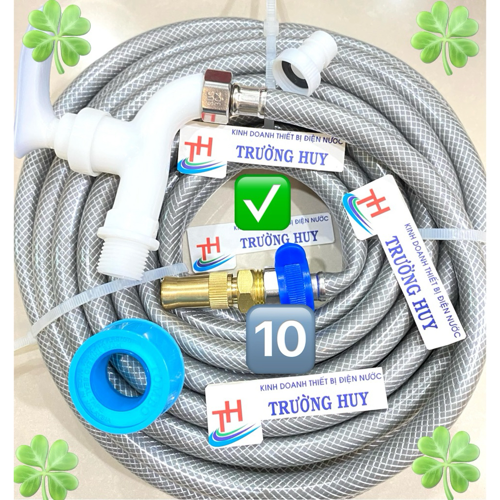 Combo: Bộ dây tưới cây - Vòi PVC - cao su non: rửa xe tiện dụng dài 3,5,8,10,12,15M - Bảo hành 6 tháng