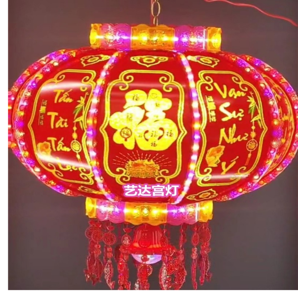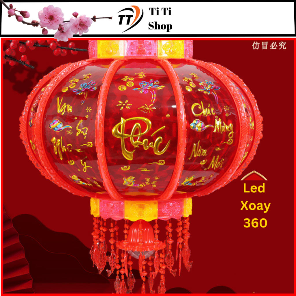 Đèn lồng xoay 360 độ 7 màu treo tết trang trí tết lồng đèn đỏ chữ phúc lồng đèn hội an