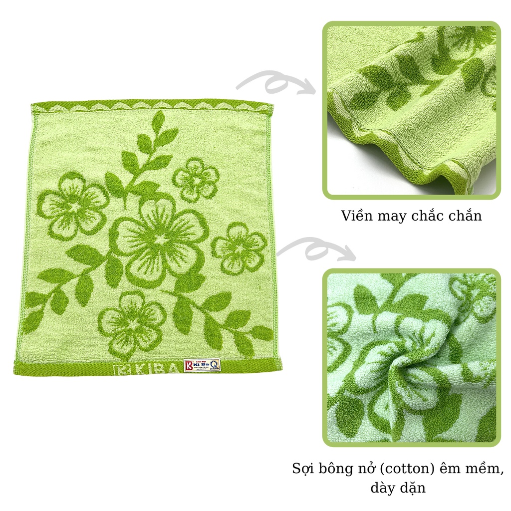 Khăn Mặt Hình Vuông KIBA Cỡ 34x34cm,Chất Liệu Cotton Dày Dặn, Thấm Hút Tốt, Họa Tiết Hoa Mai Nhiều Màu