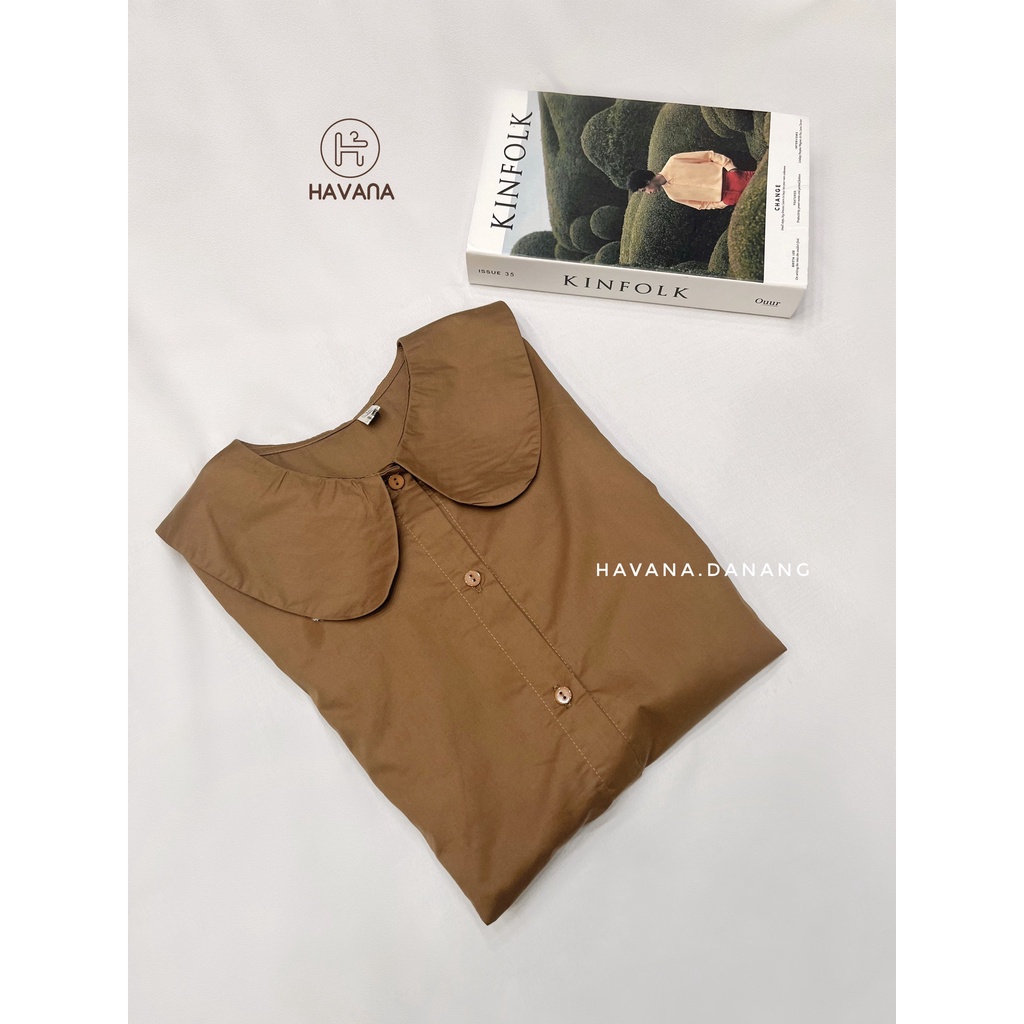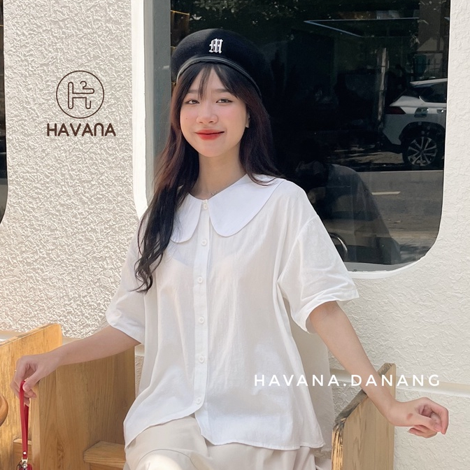 Áo sơ mi cổ bèo Hàn Quốc, áo sơ mi dáng rộng ullzang tay cộc AE418