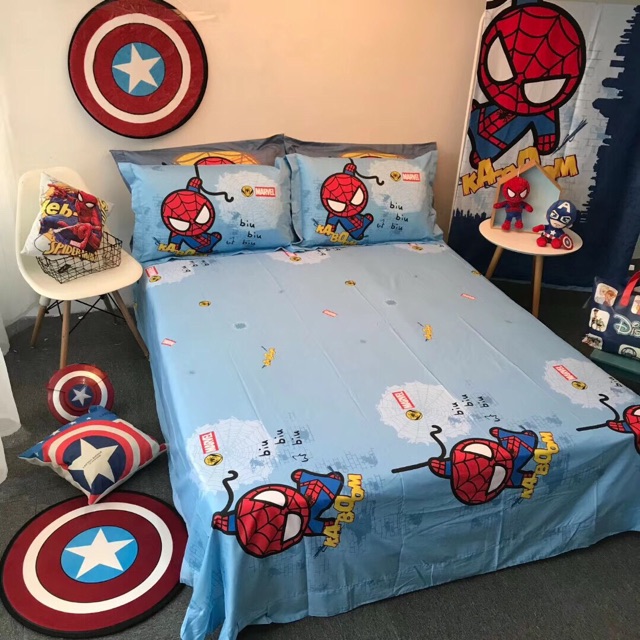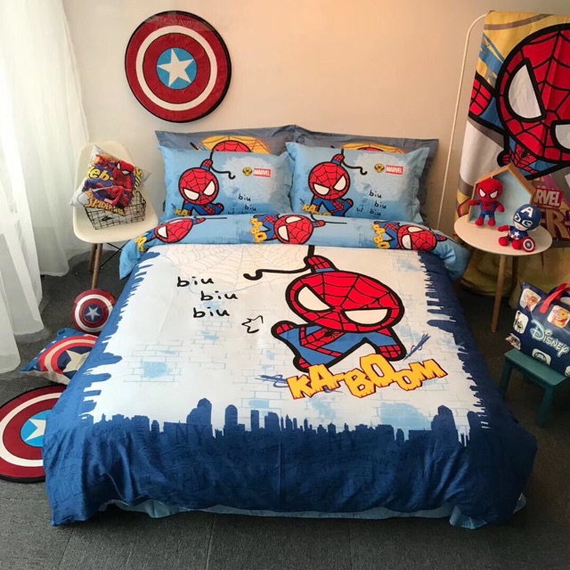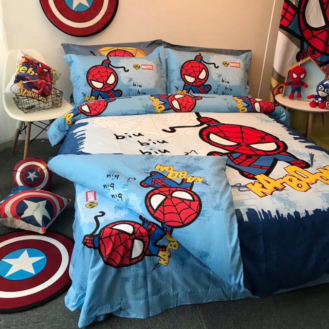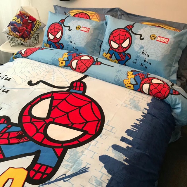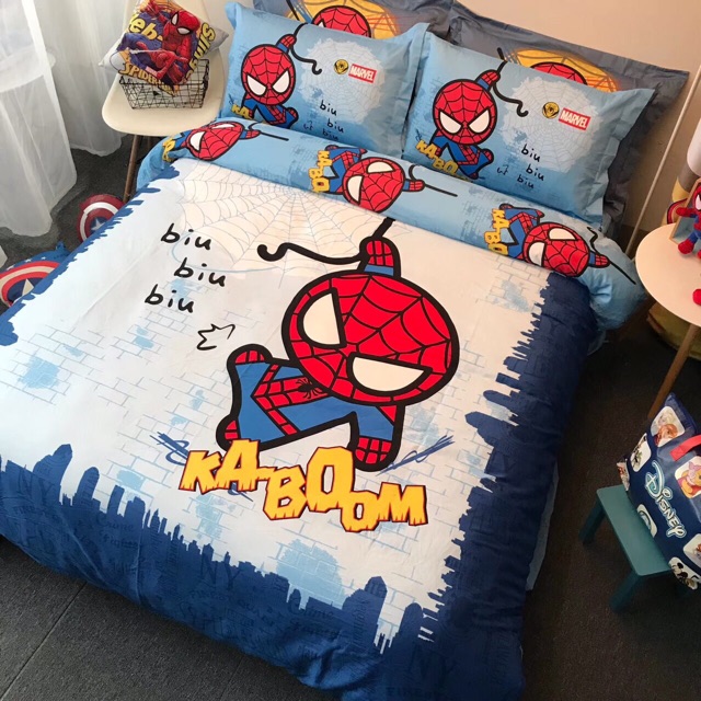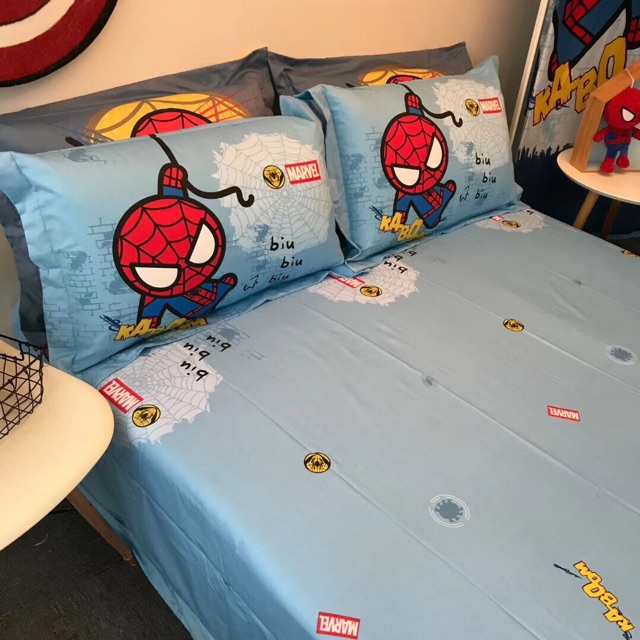 Bộ vỏ chăn ga gối cotton disney người nhện 2020