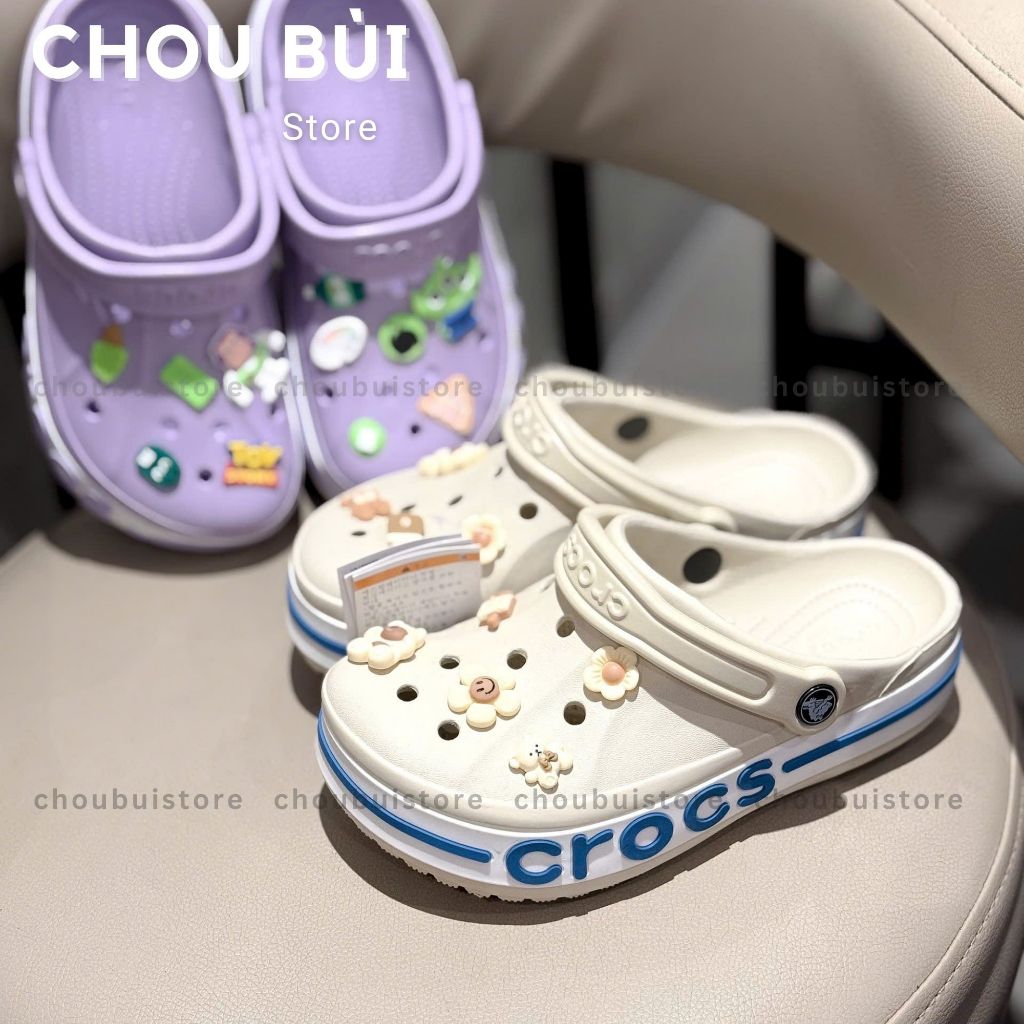 Dép sục Baya Crocs unisex, crocs viền chữ chính hãng tặng sticker - chou bùi store