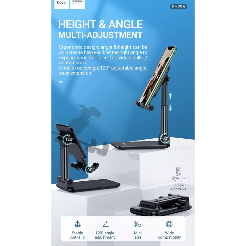 Giá đỡ điện thoại Hoco PH29A chỉnh được góc độ, cao thấp, gấp nhỏ bỏ túi, đỡ được nhiều máy kích thước lớn đến 13icnh