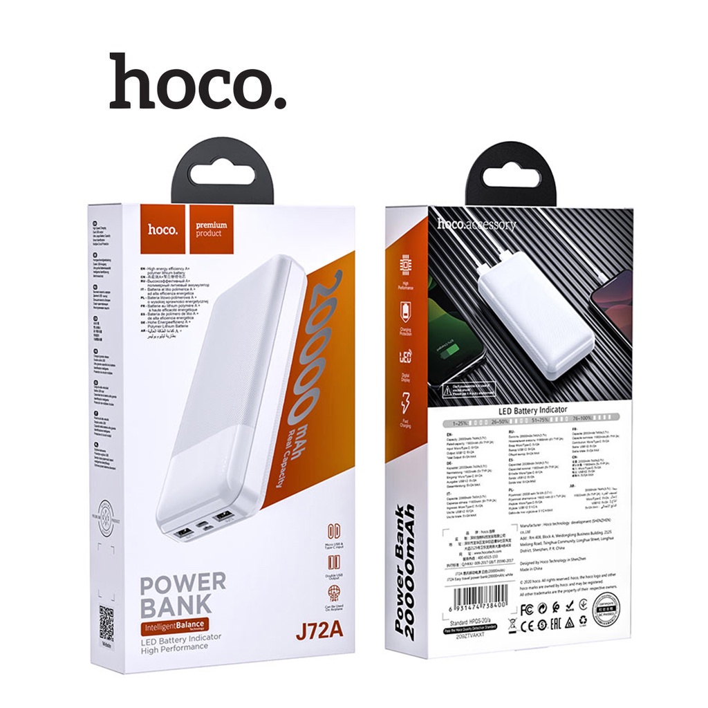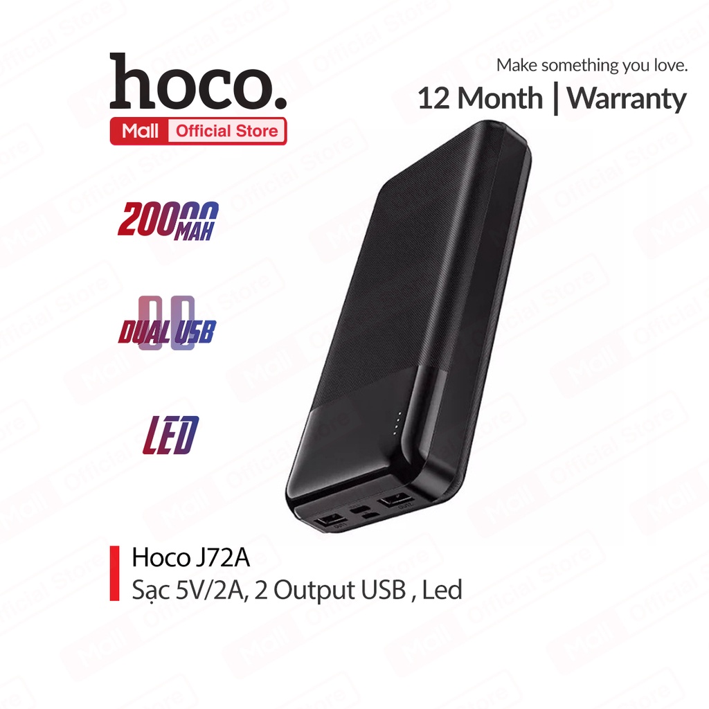 Pin dự phòng 5V/2A Hoco J72A dung lượng 20000mAh vật liệu PC cao cấp tích hợp đèn Led
