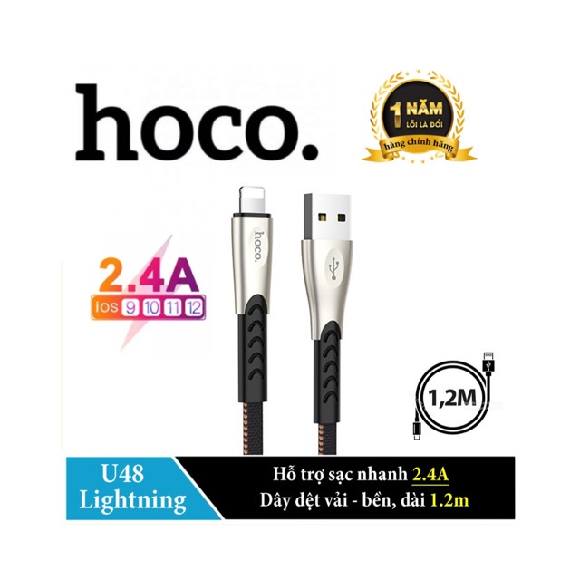 Cáp sạc dùng cho ip7/8/X/11/12 Hoco U48 sạc nhanh 2.4A dài 1.2m