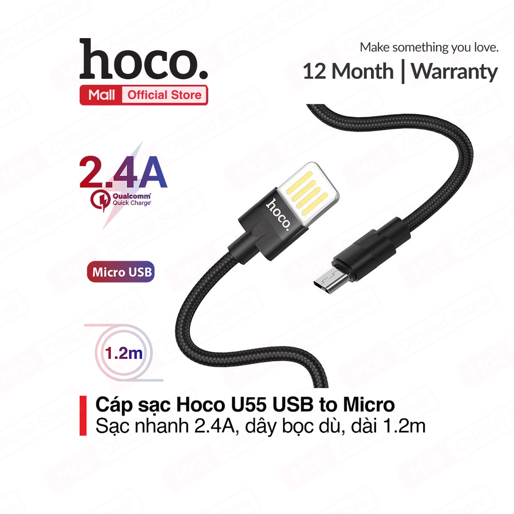 Cáp sạc nhanh Hoco U55 Micro USB dài 1.2m nguồn ra 2.4A Max dành cho Smart phone - Table