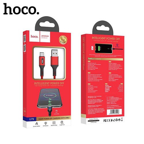 Cáp Sạc Nhanh Hoco U79 Type-C tích hợp đèn báo trên chuôi sạc và hỗ trợ truyền dữ liệu ,tự ngắt khi pin đầy