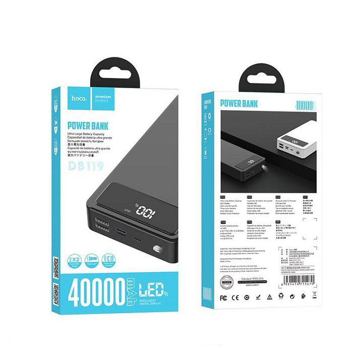 Pin sạc dự phòng Hoco DB119 dung lượng khủng 40000mAh sạc nhanh 2 cổng USB 5V/2A Max tích hợp đèn pin, màn hình LCD