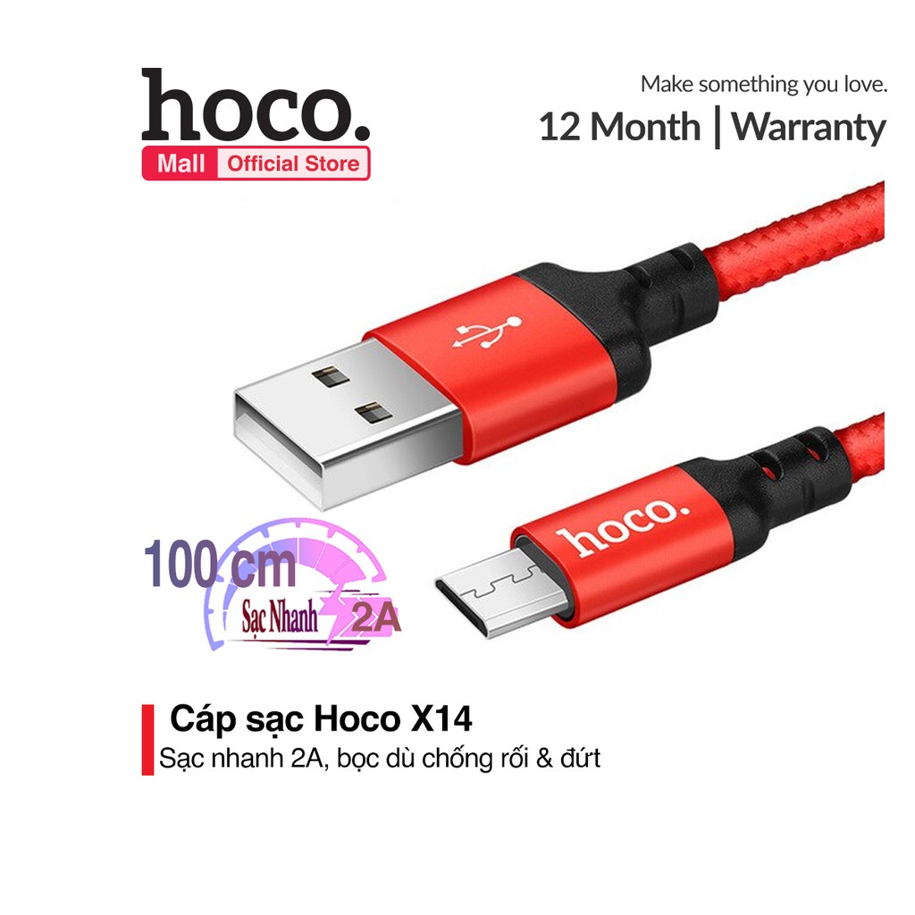Cáp sạc nhanh Micro Hoco X14, hỗ trợ truyền dữ liệu, sạc nhanh 2A, dành cho Android phone, dài 1m/2m