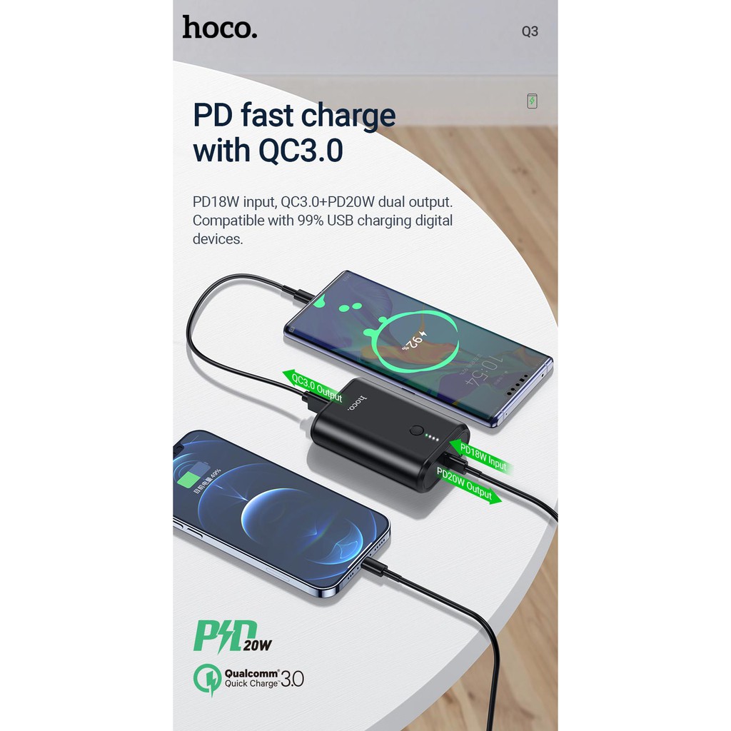 Pin sạc dự phòng Hoco Q3 Mini Size, 2 output ( USB + Type-C ), sạc nhanh PD20W/3A, có đèn LED báo pin