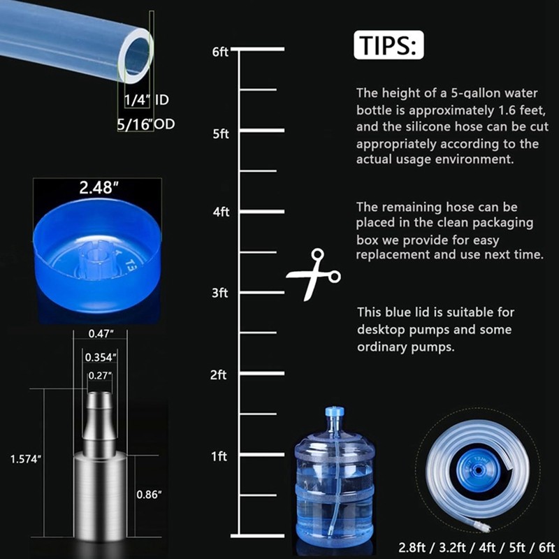 Phụ kiện máy bơm chai nước- Bộ ống bơm nước silicon và khối trọng lượng cho ống ống cao su 5 Gallon