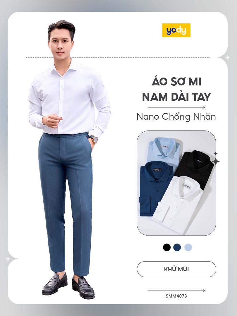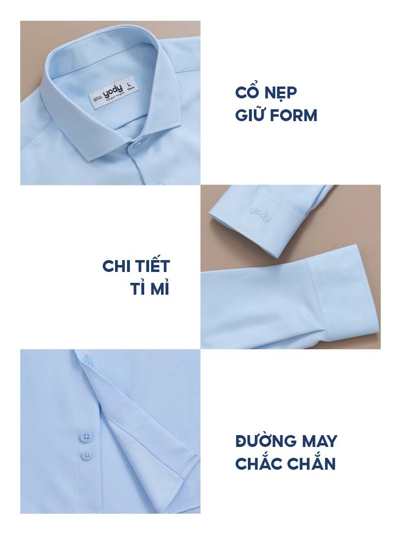 Áo sơ mi nam YODY dài tay quốc dân mềm mịn, chống nhăn, thấm hút nhanh dáng simfit TRA - MOSH25A166