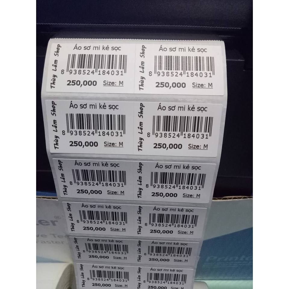 Giấy in tem mã vạch nhiệt 2 tem khổ 70x22mm, 72x22mm, 35x22mm
